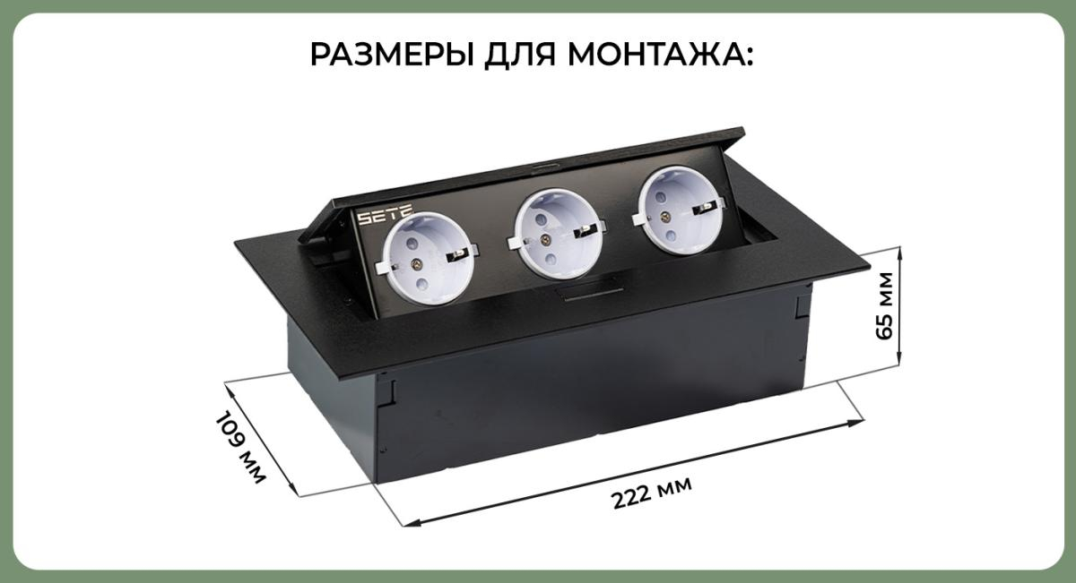 Наименование: SETE Встраиваемый настольный удлинитель, 3 гнезда, без кабеля, черный, SBT-03-20