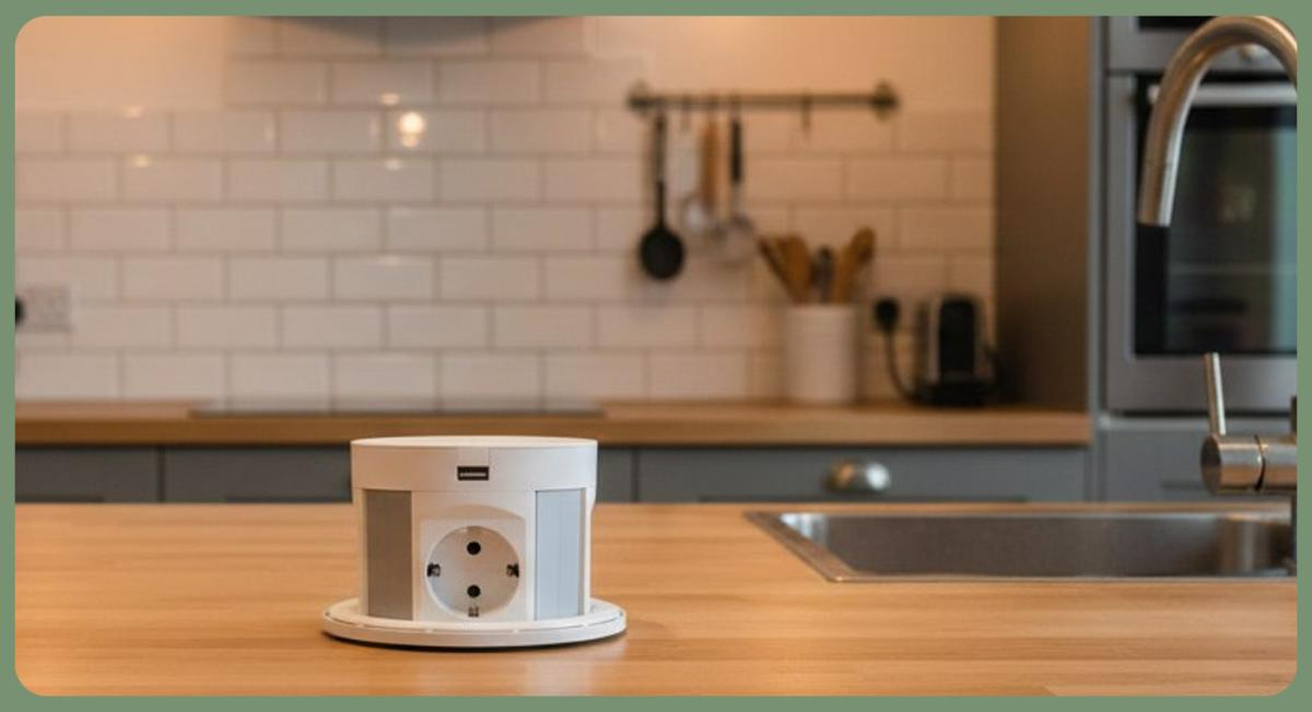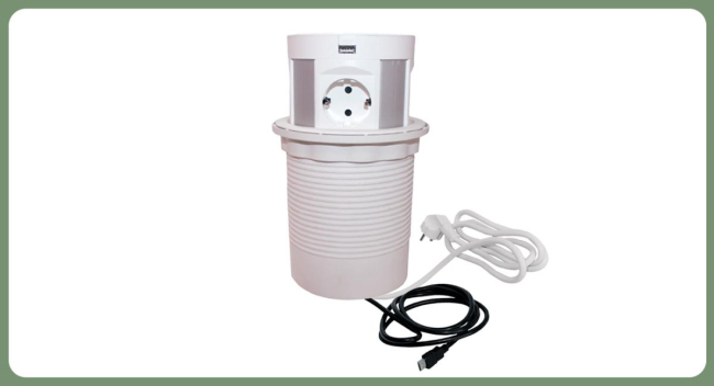 SETE Выдвижной настольный удлинитель, круглый, c беспроводной зарядкой, 2*USB,HDMI,RJ-45, белый арт. SPO-WC-W