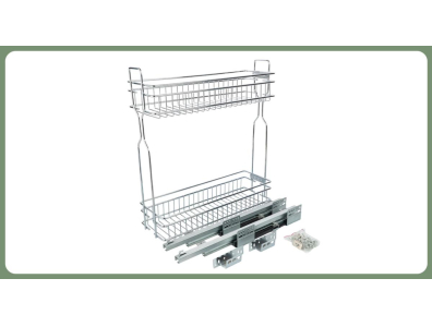 Комплектация: корзина двухуровневая, направляющие скрытого монтажа с механизмом плавного закрывания, крепления к фасаду, крепеж.