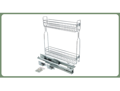 Комплектация: корзина двухуровневая, направляющие скрытого монтажа с механизмом плавного закрывания, крепления к фасаду, крепеж.