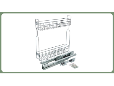 Комплектация: корзина двухуровневая, направляющие скрытого монтажа с механизмом плавного закрывания, крепления к фасаду, крепеж.