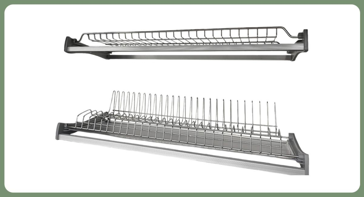 Комплектация: посудосушитель двухуровневый, поддон пластиковый 1 шт, алюминиевые рамки 4 шт, крепления к боковым стенкам 4 шт.