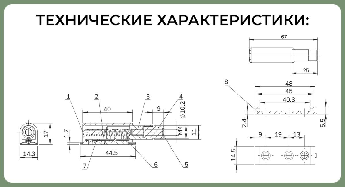 Наименование: SETE Отбойник с магнитным окончанием, короткий, пластик, белый BU-MS-10