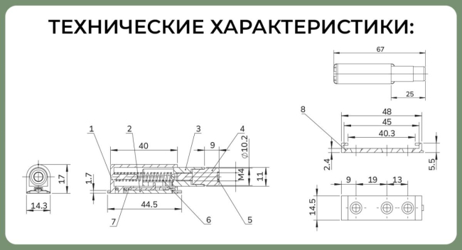 Примечание: SETE Толкатель (отбойник) c силиконовым окончанием с накладным типом монтажа предназначен для распашных дверей и ящиков без доводчиков.