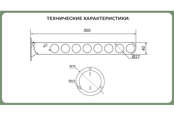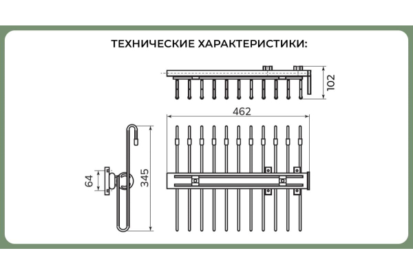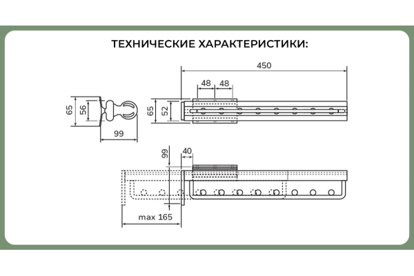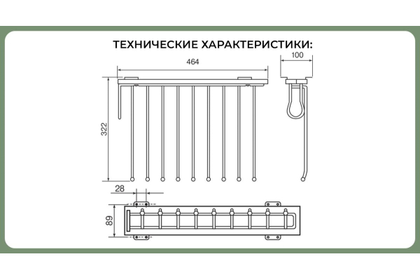 Наименование: SETE Вешалка для одежды верхнее крепление, 65x460x100, алюминий, пластик, сталь