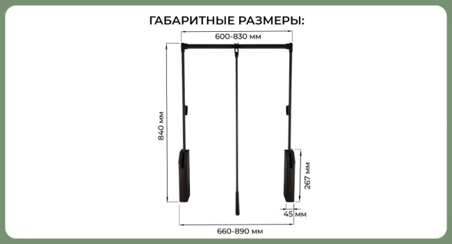 SETE Пантограф 12кг, 660-890, масляный,с доп. креплениями к стене, черный, WL-SOLA-6083-20