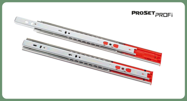 Примечание: Особенности работы шариковых направляющих 2 в 1: на направляющих PROSET PROFI стоят два механизма, противодействующие друг другу, поэтому механизм Push-to-Open при открывании будет выталкивать ящик на небольшое расстояние 4-6 см, далее следует открыть ящик вручную на необходимую для вас глубину, при этом вы будете ощущать небольшое сопротивление, тем самым вы взводите механизм доводчика. Далее,прилагая усилие,толкните ящик обратно.Обращаем Ваше внимание, что направляющие полного выдвижения.