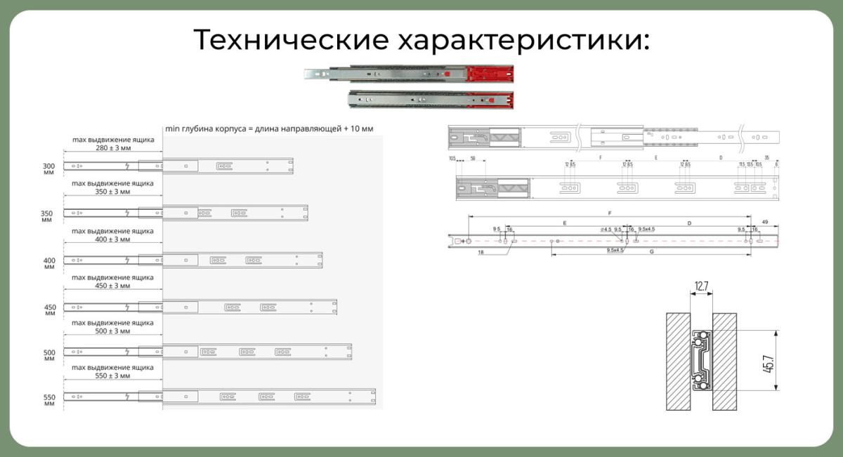 Наименование: SETE Шариковая направляющая PUSH TO OPEN H45, 1,2x1,2x1,5, L400, сталь, 15шт/кор SB-P-45400N