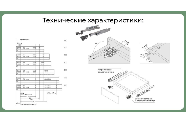 Наименование: SETE Направляющая скрытого монтажа с 3D регулировкой SLIDESET, L450,IS-450DS(10шт/к)
