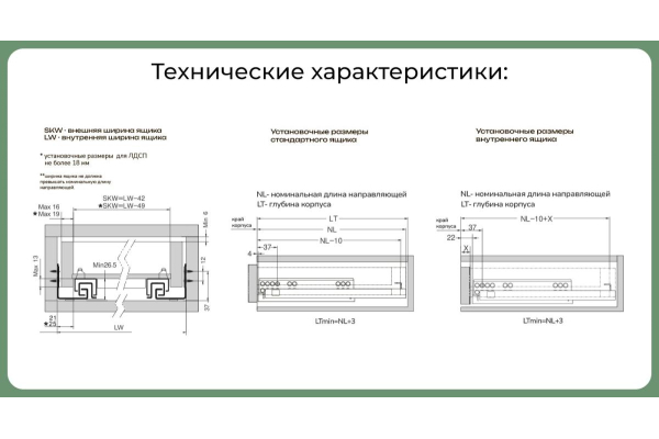 Направляющие скрытого монтажа с доводчиком