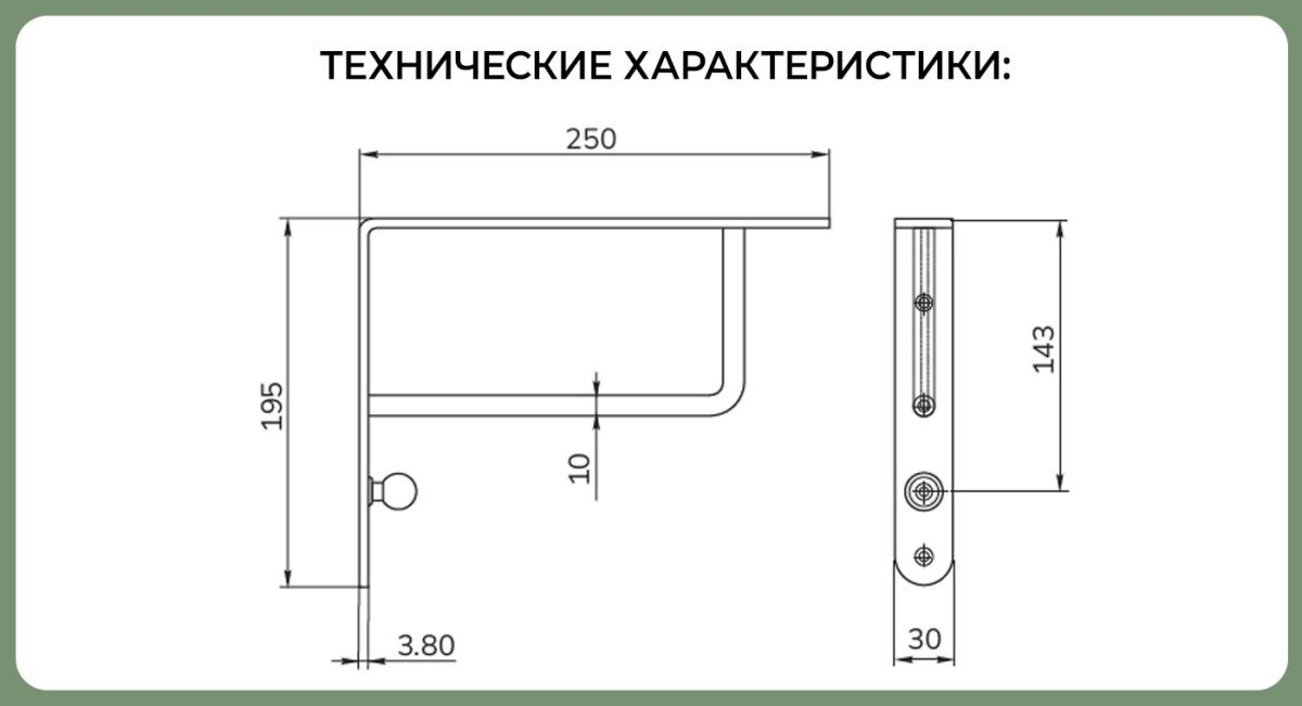 Наименование: SETE Полкодержатель, инокс, сталь, прямоугольный