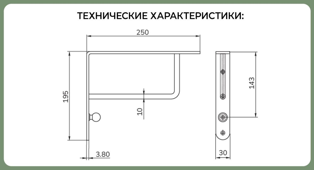 Наименование: SETE Полкодержатель, матовый хром, сталь, прямоугольный