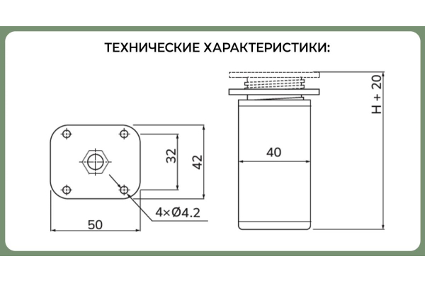 Наименование: SETE Ножка регулируемая, квадратная, 40*40, Н=100мм, алюминий, 50шт/200 шт/кор, NS-039100-05