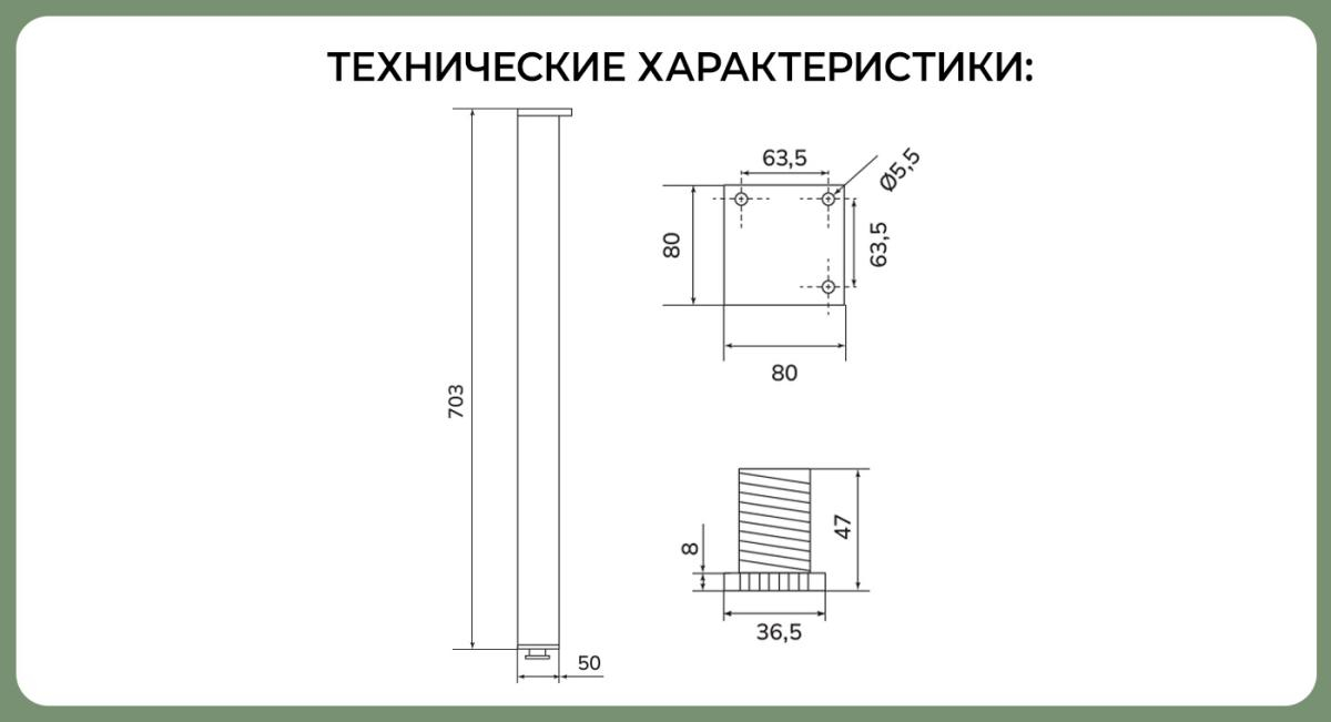 Наименование: SETE Ножка для мебели 50*50*710, NAK-50710-10, алюминий, белая 20шт