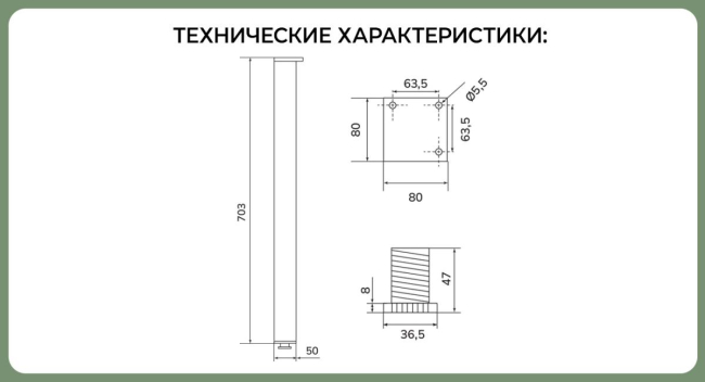 - Ширина, мм: 50*50