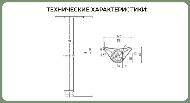 Доп. информация: регулировка опор +30мм. Шурупы для крепления опоры к столешнице приобретаются отдельно.