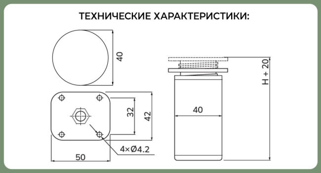 Доп. информация: регулировка опор +20мм,