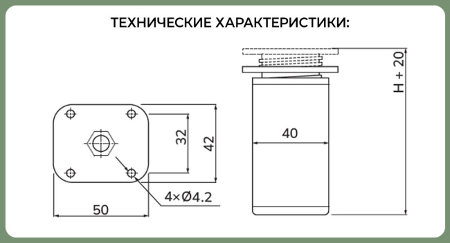 Наименование: SETE Ножка регулируемая, квадратная, 40*40, Н=100мм, алюминий, 50шт/200 шт/кор, NS-039100-05