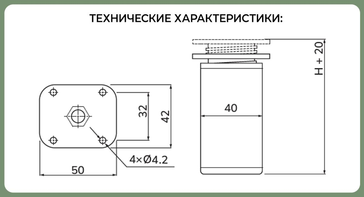 Доп. информация: регулировка опор +20мм,