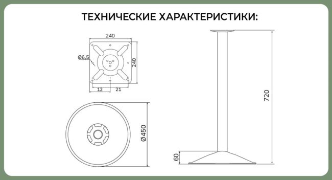 Диаметр, мм: основание 450 колонна 60