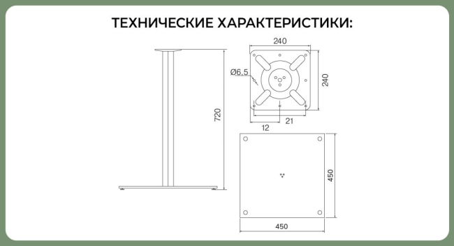 Наименование: SETE Подстолье с квадратным основанием 450*450mm, Н=720mm, белый, сталь .NS-450720S-10