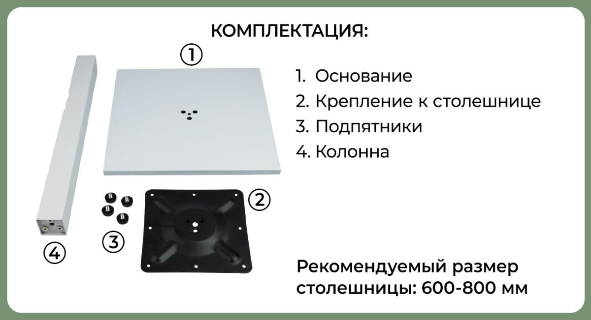 Доп. информация: рекомендуемый размер столешницы 600-800; Поставляется в разобранном виде.
