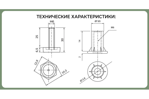Наименование: SETE Регулируемая ножка М6 plus, сталь, пластик.NS-M6plus (втулка забивная)