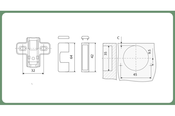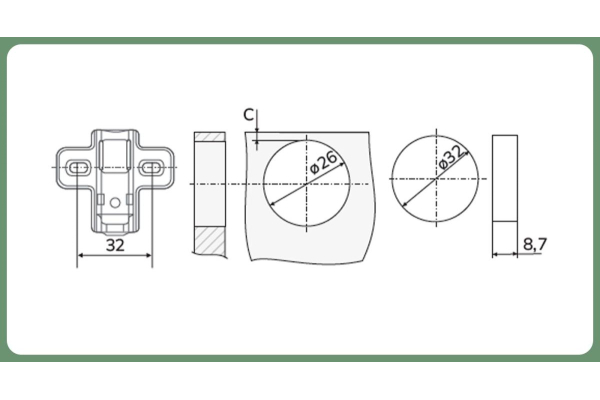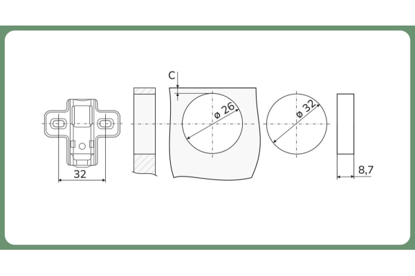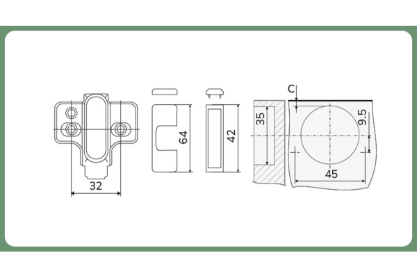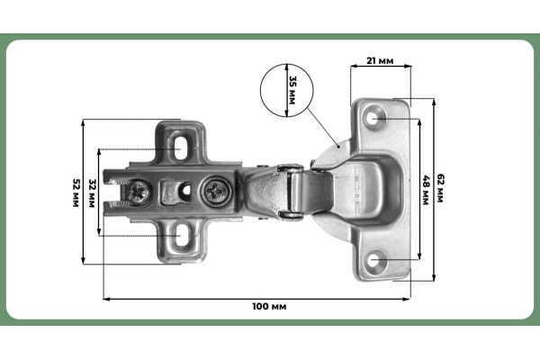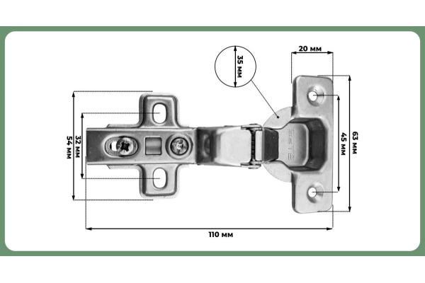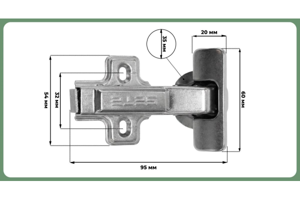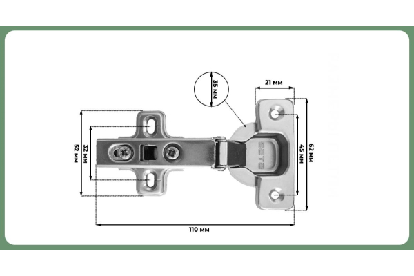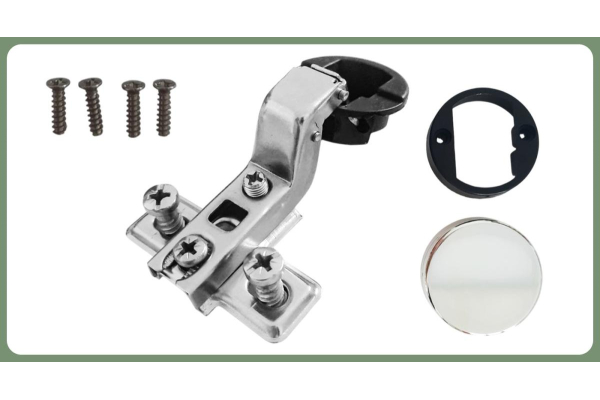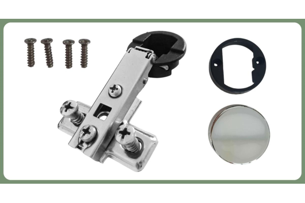 Комплектация: петля с ответной планкой,еврошурупы, крепежное пластмассовое кольцо, декоративная заглушка круглая хром, винты