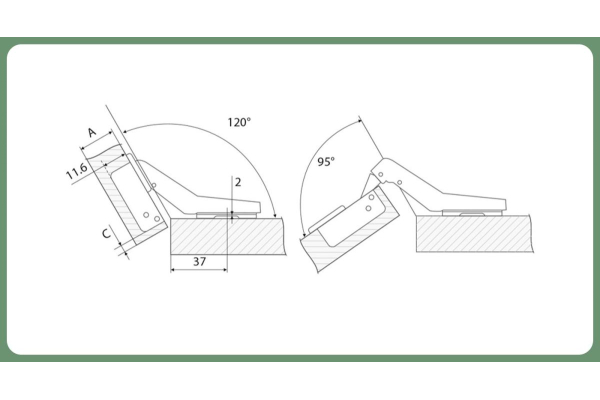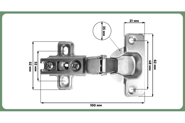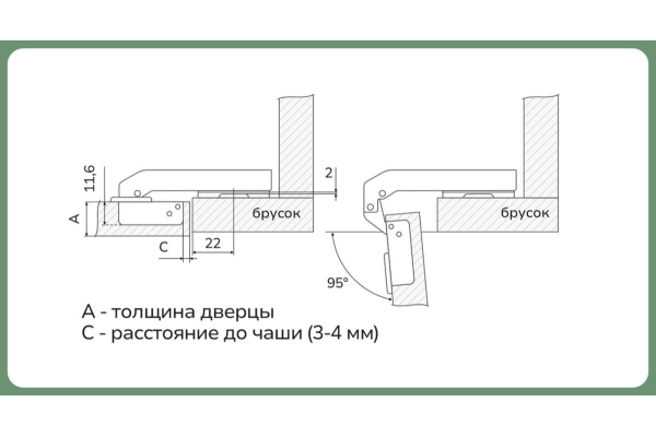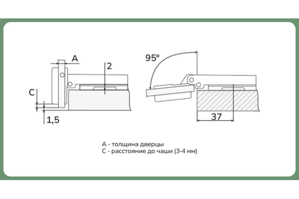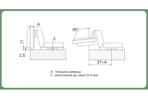 - Угол открывания: 95