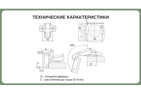 Наименование: SETE Петля с доводчиком 165°