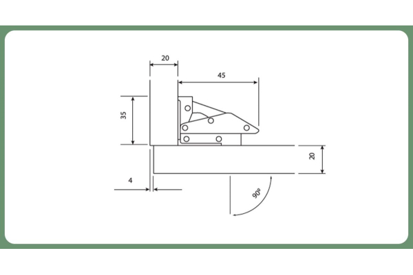 - Угол открывания: 90