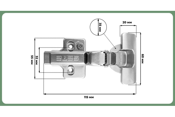 SETE Петля с доводчиком вкладная, без евро, арт. HH-C