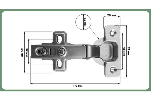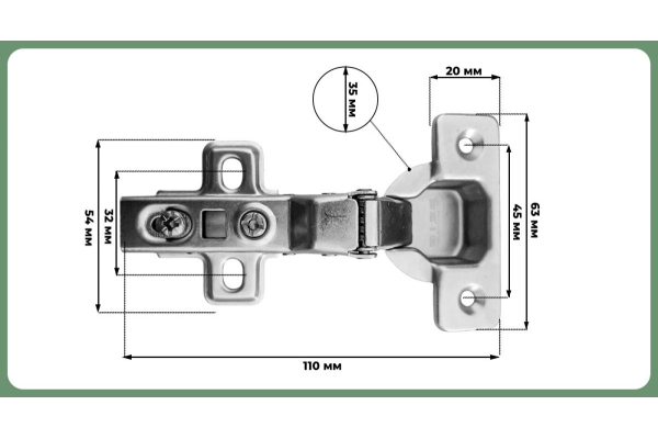 SETE Петля с доводчиком вкладная, без евро, регул. 3 пл., H=2, присадка=45, арт. HHC-3DC