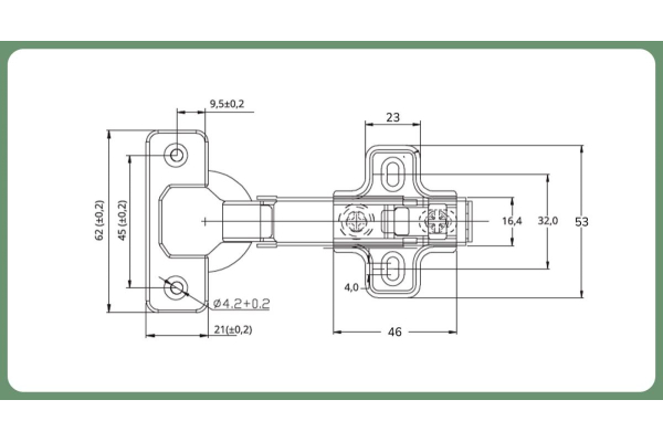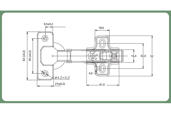 SETE Петля с доводчиком накладная, без евро, регул 3 пл, H=2, присадка=45, арт. HHC-3DA