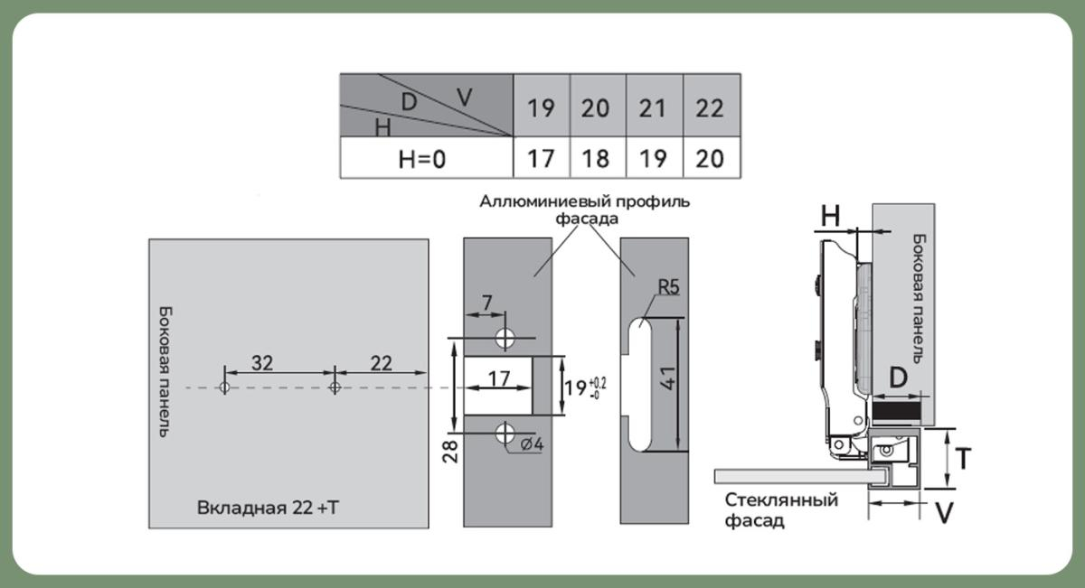 Толщина фасада с алюм. рамкой, мм: 19-22