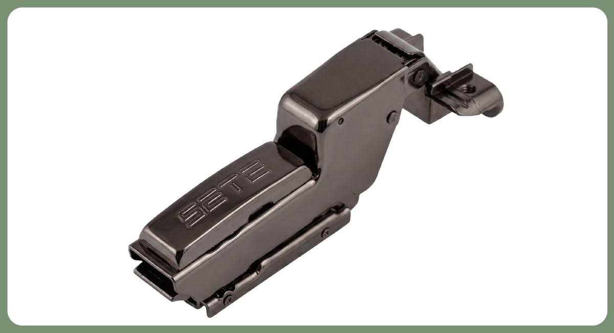 SETE Петля для алюм рамок, 3D, вклад.,без пружины, декор наклад,черн никель, H=0, HWS-CFB