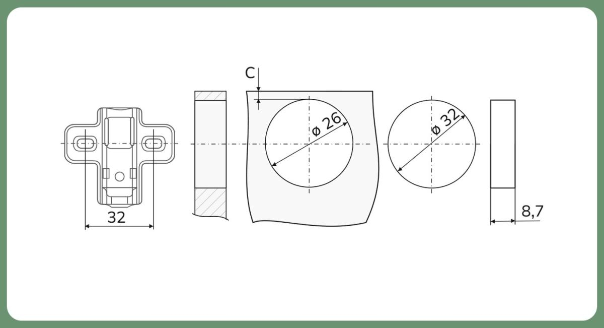- Размер чаши, мм: 26