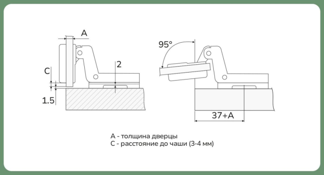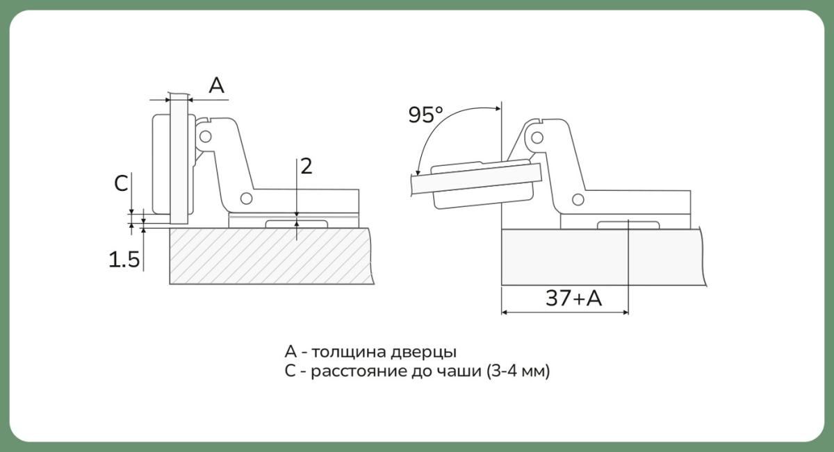 - Угол открывания: 95