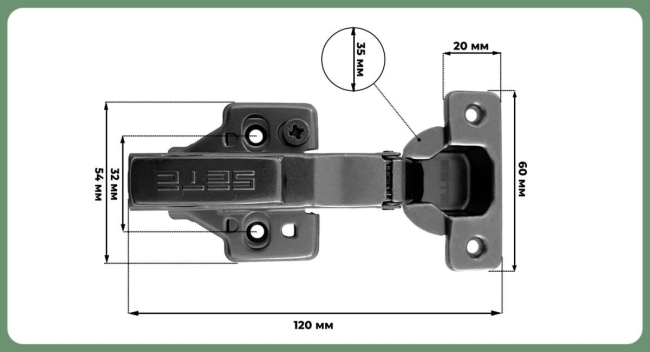 Наименование: SETE Петля с довод. 2W, накладная, 3D, без евро, черный никель