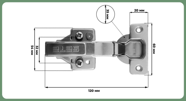 Наименование: SETE Петля с довод. 2W, накладная, 3D, с евро, с декор. накладками