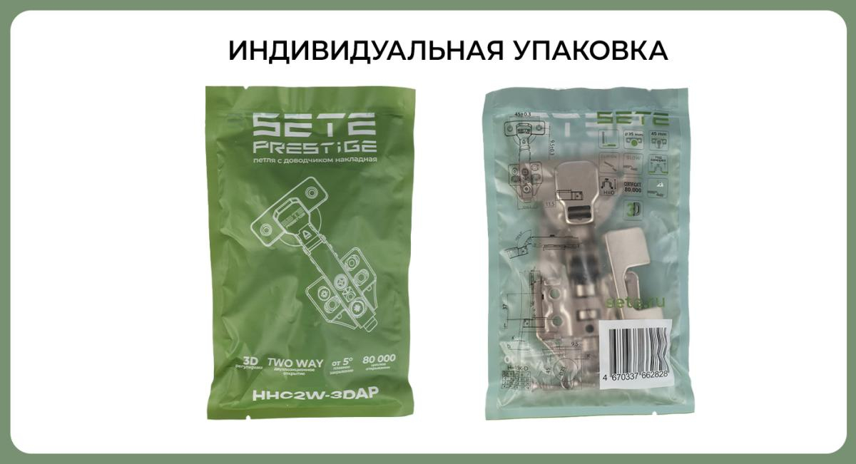 SETE Петля с довод PRESTIGE,2W,накладная,3D,с декор наклад,без евр,пр=45,H=0,сталь,HHC2W-3DAP