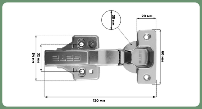 Наименование: SETE Петля с довод. 2W, накладная, 3D, без евро