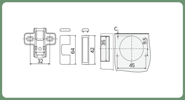 SETE Петля с доводчиком накладная, с евро, H=2, присадка=45, с декор. наклад. арт. HHC-AE