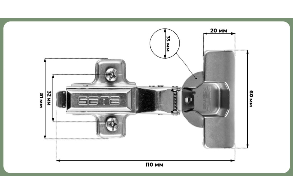 Наименование: SETE Петля с доводчиком полунакладная, 3D регулировкой