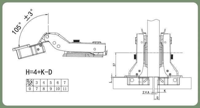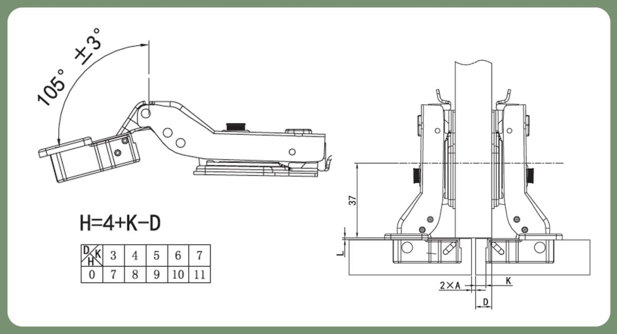 - Угол открывания: 105