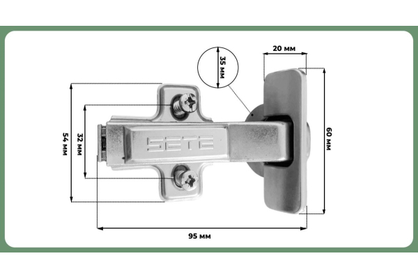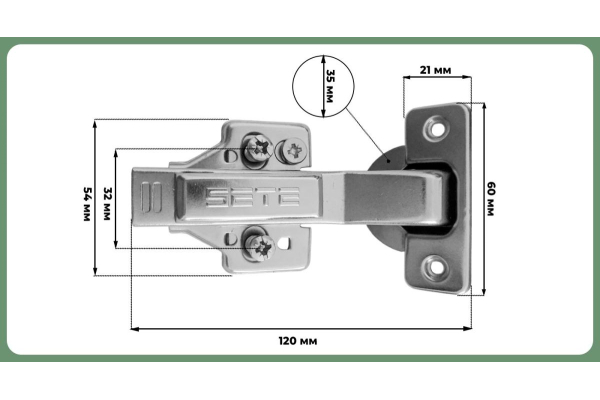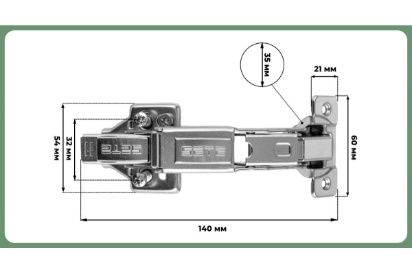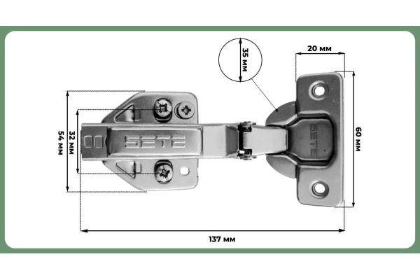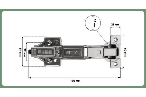 Наименование: SETE Петля с доводчиком минус -45°, с евро, с декор. накладками