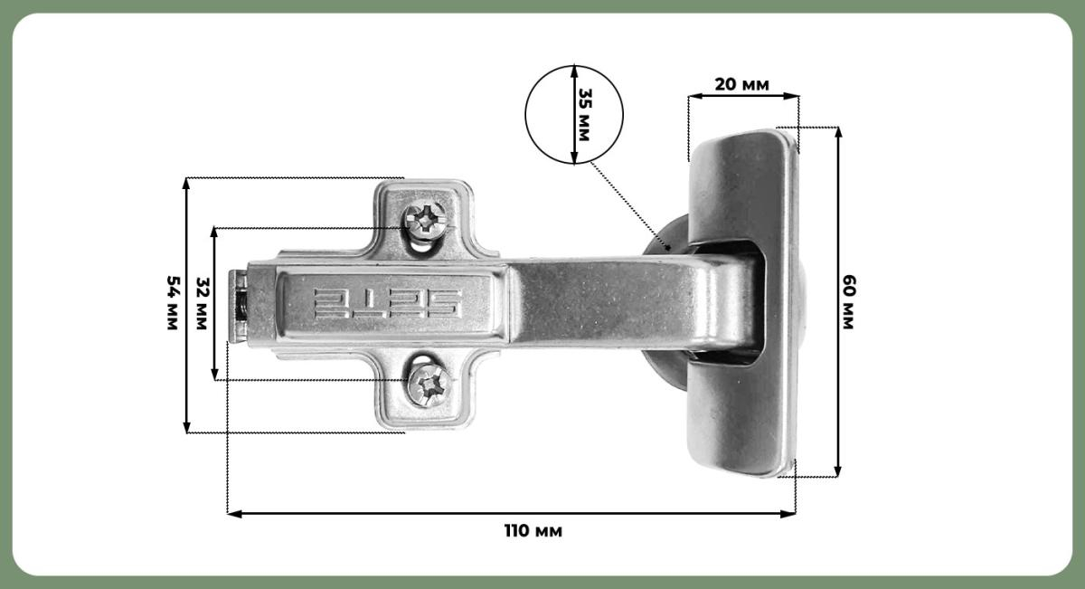 - Угол открывания: 95