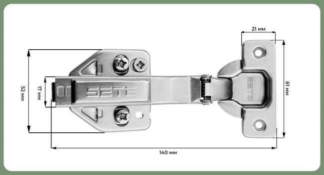 Наименование: SETE Петля с доводчиком минус -30°, с евро, с декор. накладками