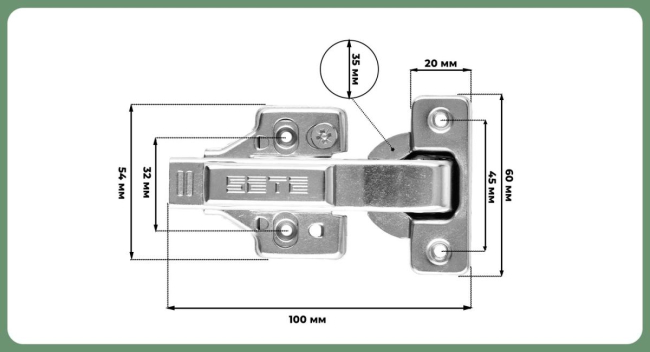 - Угол открывания: 95