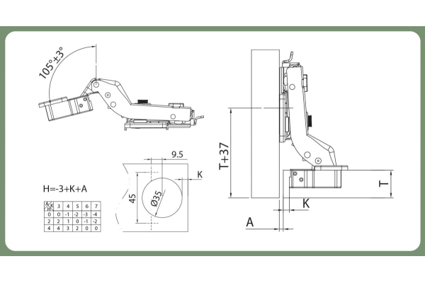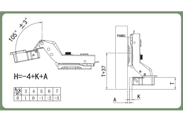 - Угол открывания: 105
